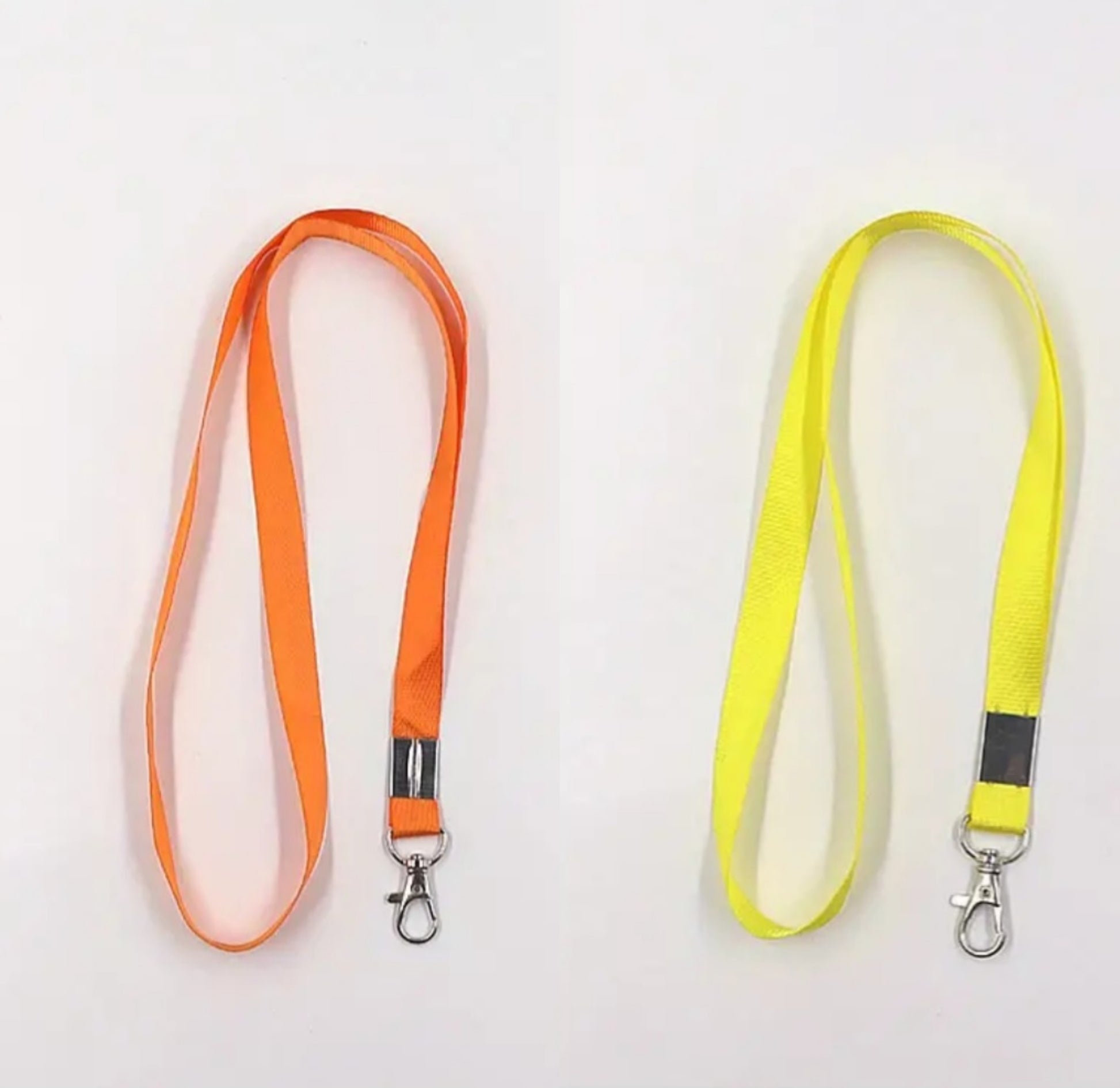 Lanyards are available in black, pink, yellow, orange, green or blue with white or black writing.